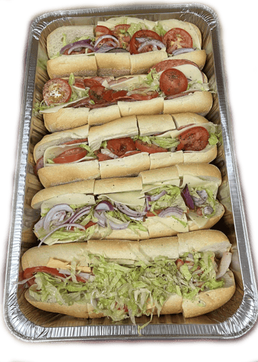Half tray typically feeds 8-10 people, full tray 15-20 people