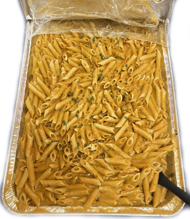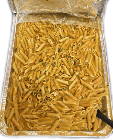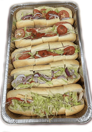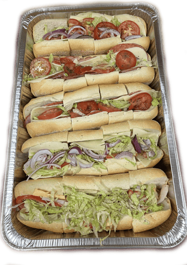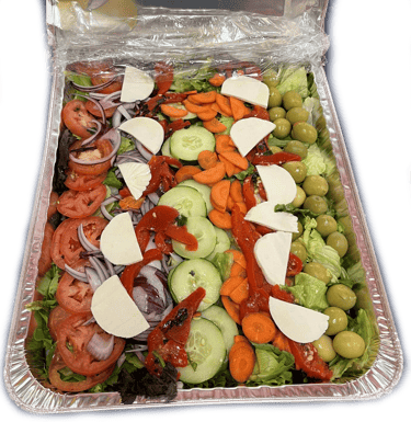Half tray typically feeds 8-10 people, full tray 15-20 people